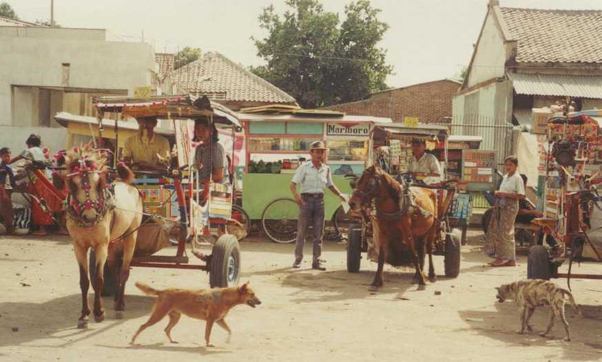 Ben Hur (paardentaxi) naar de markt waar ook de bemo's staan. Hier charteren we