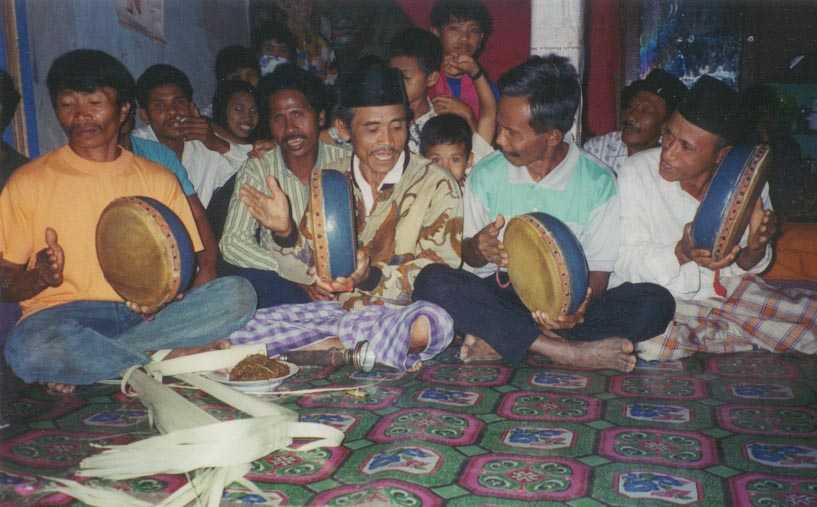 tijd op een grote trom te slaan en daarbij te zingen.