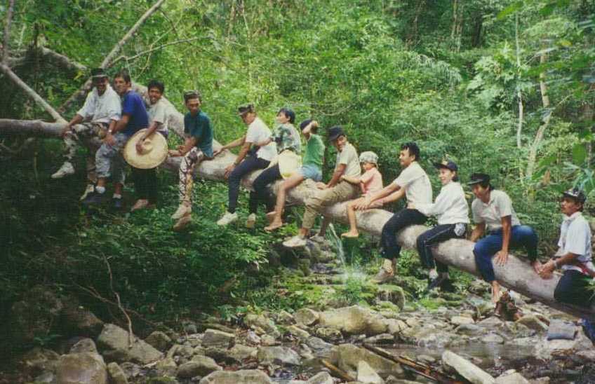 hebben opgepikt) vanwaar we nog één kilometer door de jungle moeten sjouwen om
