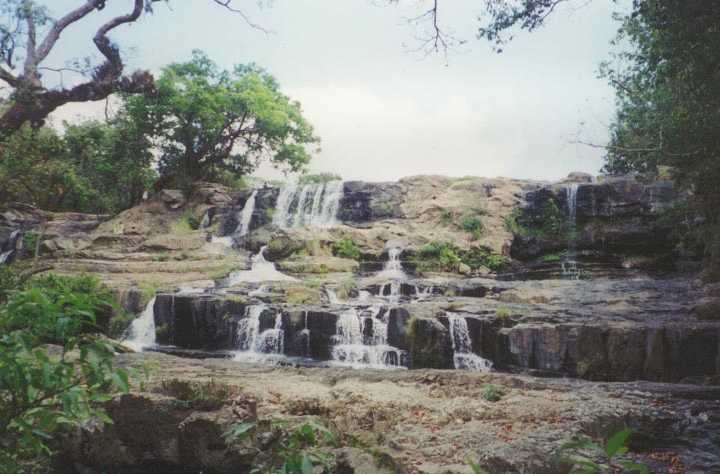 naar een waterval. We rijden over de meest verschrikkelijke keienpaden, door