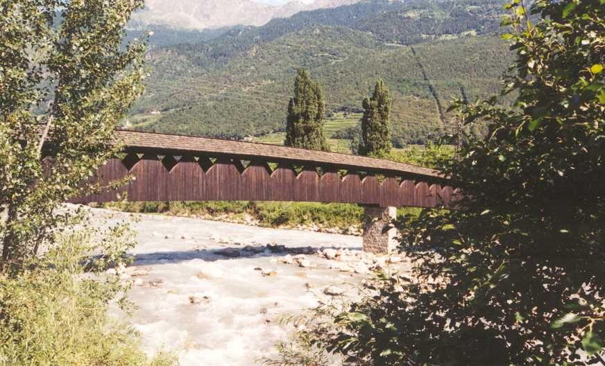 houten bruggen over de Inn, bruggen met dwarsliggers die wel 5 cm in hoogte