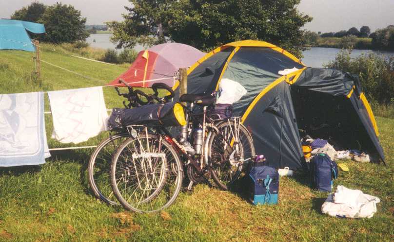 Even uitrusten kan dus geen kwaad. Zaterdag 27 juni (Walldorf, 0 km) Vandaag is het dus rustdag. Heerlijk geluierd, gelezen, de was gedaan, enig fietsonderhoud gepleegd en uitgebreid koffie met gebak bij de tent genuttigd. Tegen vieren zijn we naar de midgetgolfbaan gegaan. De winnaar heeft een coupe ijs verdiend. Zondag 28 juni (Walldorf - Porzheim/Häckermühle, 86 km) Helaas is het vannacht gaan regenen, zodat we later