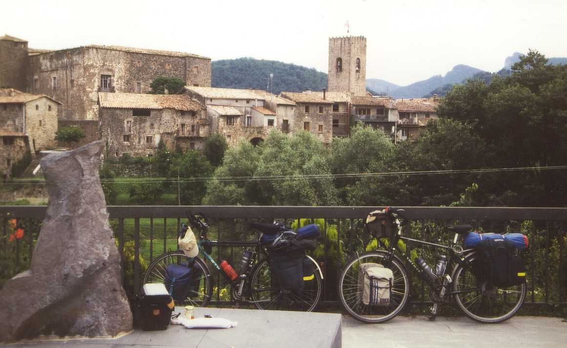 Deel 1: Van Narbonne tot Espot Na eerst in Den Bosch nog wat aan sightseeing te hebben gedaan, vertrekken we om half 5 met de NS naar Narbonne. Als wij de volgende dag om 10:00 uur met onze fietsen op het station van Narbonne staan, beginnen we eerst maar eens met een stevige bak koffie op een terrasje in de zon. We besluiten de eerste dag rustig te beginnen, ook al omdat we slecht hebben geslapen en aan de warmte moeten wennen. Als we na een paar kilometer fietsen de drukke D613 verlaten, rijden we meteen de rust in en kunnen we gaan genieten van de omgeving: veel wijngaarden met prachtige rotsen op de achtergrond. Na een Franse (dus warme) lunch in Ripaud (menu à 69 FF) moeten we kilometers lang klimmen. Flauwtjes weliswaar, maar de al genoemde slechte nachtrust, het feit dat het voor ons de eerst warme dag is en ook nog eens een stevige tegenwind, zijn genoeg ingrediënten om al om 4 uur op de camping van Tuchan neer te willen ploffen. Helaas! De camping blijkt (op 14 juni) nog gesloten. We kunnen nog 15 kilometer verder fietsen om te zien of we op de volgende camping wel terechtkunnen, of we nemen onze intrek in de Hostellerie Mont Tauch. Tot dat laatste besluiten we, na ook nog vergeefs naar een gîte d’étape gezocht te hebben. De volgende dag klimmen we vanuit Tuchan, via Estagel naar de Col de la Bataille (265m). In Thuir gebruiken we de lunch. Na enig zoeken vinden we de weg naar Llauro. Vanaf Fourques tot op Col de Llauro (380 m) is het weer klimmen geblazen, het stelt nog niet zo veel voor, maar het is al wel inspannend voor plattelanders zoals wij. Een heerlijke afdaling brengt ons tot in Céret. Hier zetten we ons tentje neer op de camping municipal.