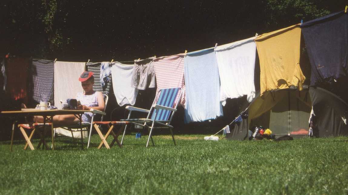 De volgende dag houden we een rustdag ter voorbereiding op ons vertrek en de beklimming (met bepakte fietsen) van de hoogste col tijdens deze vakantie. Rustdag betekent voor ons: de was doen, fietsonderhoud en lekker lezen. We hebben van Nederlandse buren op de camping een tafeltje, twee stoeltjes en nog twee krukjes (om onze benen op te leggen!) te leen gekregen, nee het leven van een vakantiefietser is zo slecht nog niet…