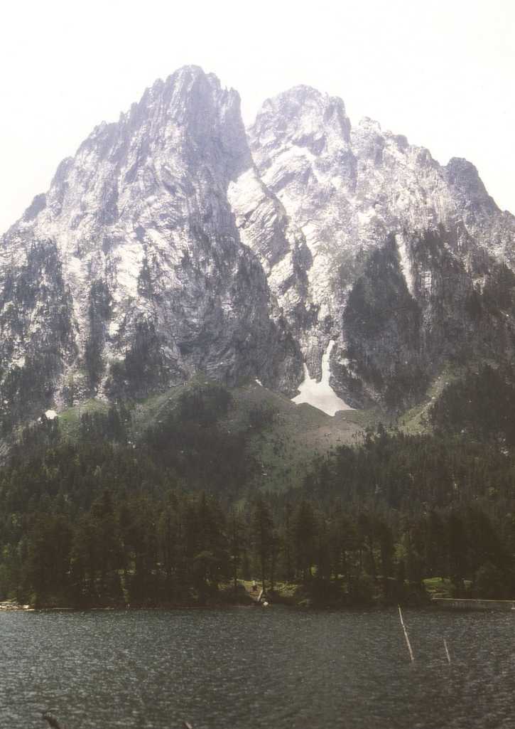 Deel 2: Wandelen in Parque Nacional Aigues Tortes Het is inmiddels zaterdag 26 juni en dit wordt onze eerste wandeldag. Helaas begint de dag met regen en onweer. Om 11 uur begint het wat op te klaren, rap op pad dus. We nemen een jeeptaxi waar 9 personen in kunnen, kosten 600 Pts per persoon voor een enkele reis, naar Estany de Sant Maurici, een groot stuwmeer. De tocht verloopt via een hele slechte weg vol gaten. En dan te bedenken dat we met de fiets hadden willen gaan! Nog voor we boven zijn (1950 meter) komt de regen weer met bakken uit de lucht. Gelukkig is er een schuilhut.