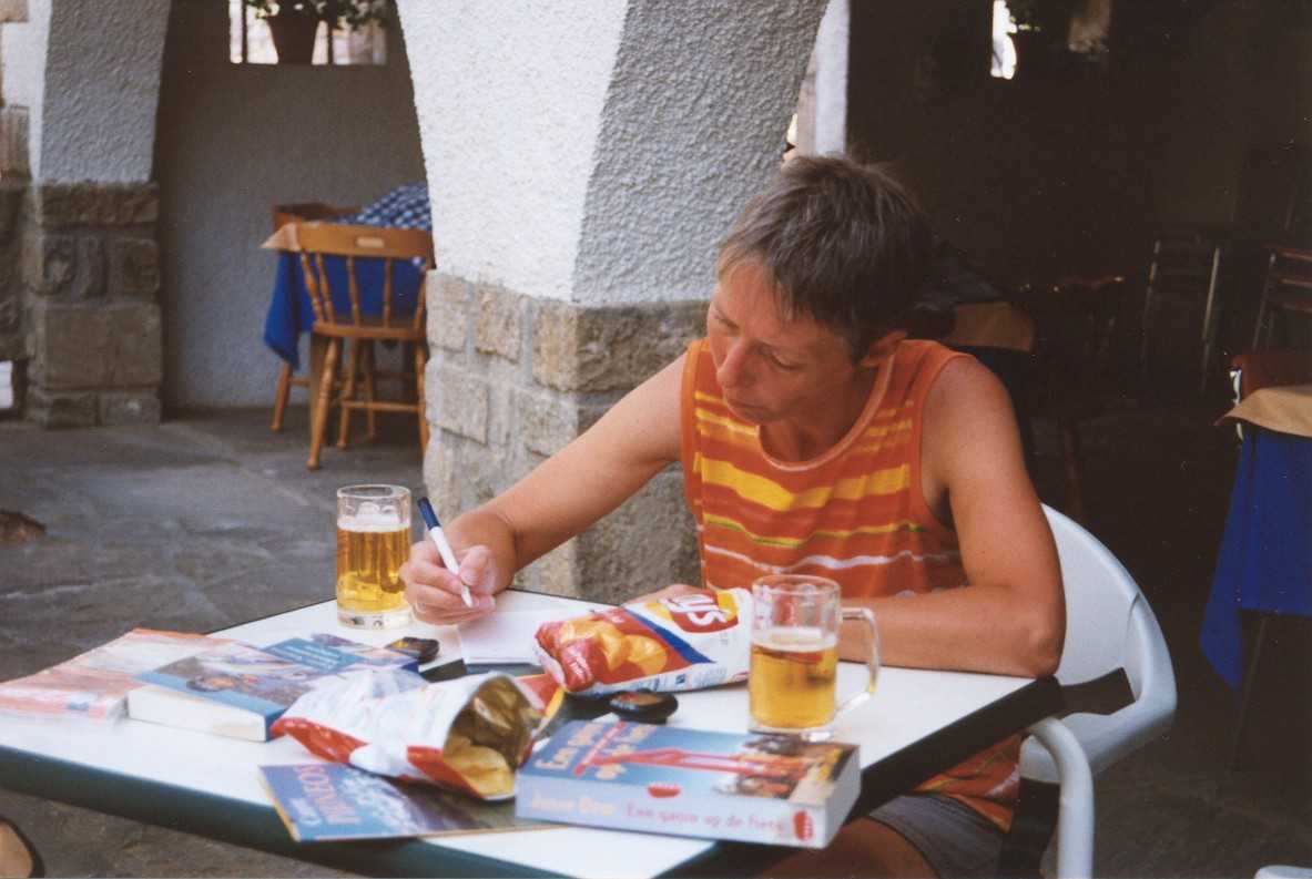zitten te lezen onder het genot van een onze dagelijkse portie cerveza en chips