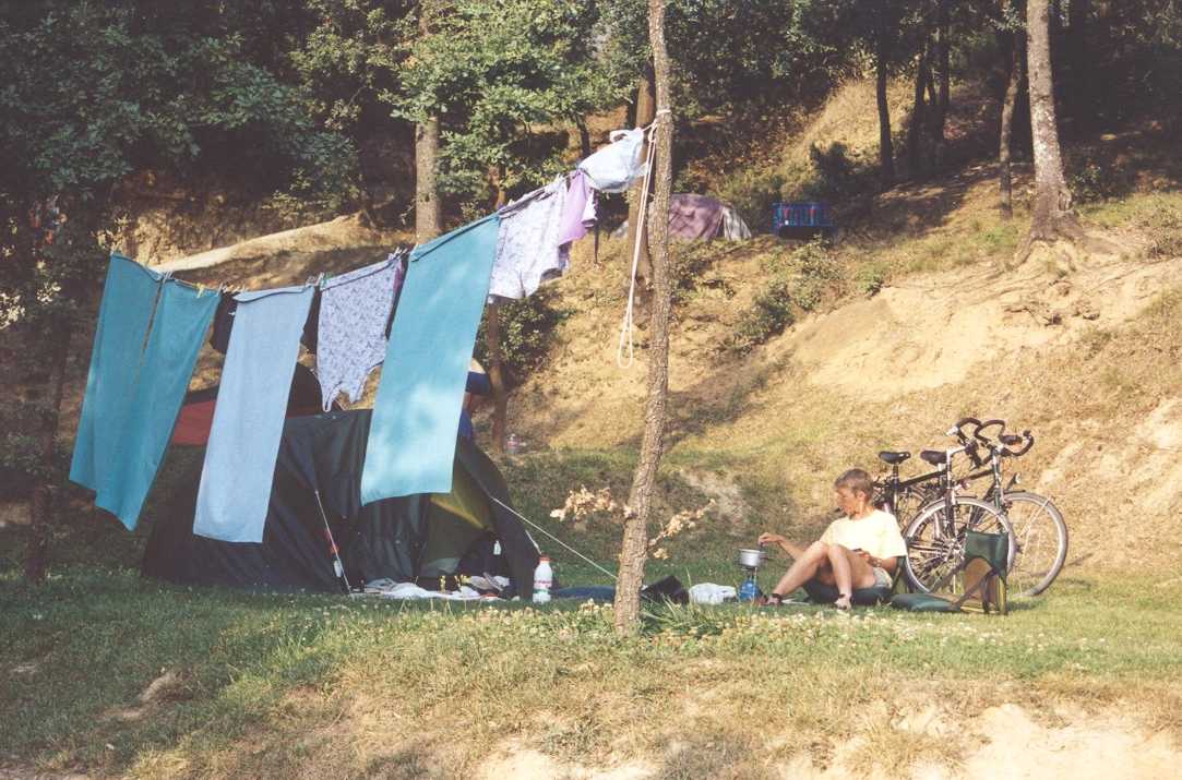 camping in Santa Pau. Hier komen we 2 Belgen tegen (m+v) die al 9 dagen