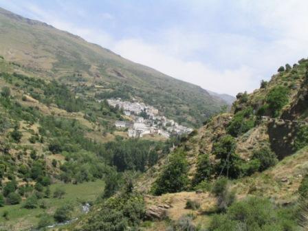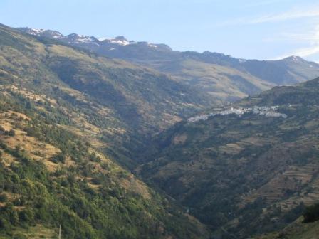 In tegenstelling tot wat LO in zijn boekje vermeld is er WEL een camping: Camping Trevélez, 1 km ZW van Trevélez aan de GR421. We vinden het een matige, wat verlopen camping, en omdat wij Trevélez nogal druk en toeristisch vinden rijden we door tot camping El Balcón in Pitres die ons wel aanstaat. Menig Spanjaard die wij tijdens deze vakantie hebben gesproken, heeft ons aangeraden om vooral door de Alpujarras te gaan. En dat is volkomen terecht. De Alpujarras is eigenlijk een optelsom van de Franse, Zwitserse en Oostenrijkse Alpen, maar dan met een Spaanse invulling wat de dorpjes met witte huizen betreft. Helaas gaan we nu alweer de Alpujarras uit, route 23 richting Granada. Tot Orgiva kunnen we nog volop genieten van de prachtige omgeving, en Orgiva zelf is ook leuk, vooral de chaotische markt is heel gezellig; volgens de Lonely Planet heeft deze markt een hoog New Age gehalte; ons valt vooral het grote aantal Engelsen op. Het is wel toeristisch, we kunnen er echte cappuccino (geen Spaanse cappuccino= koffie met slagroom) drinken, er is zelfs appelgebak, wat een luxe!