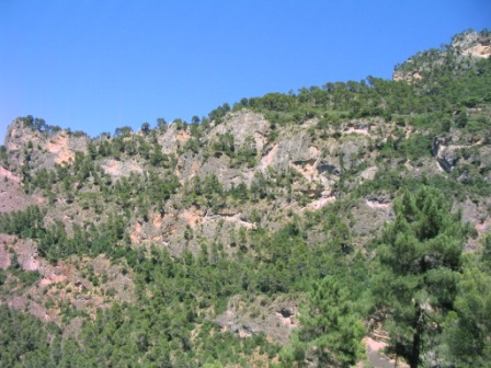 Het volgende stukje kan door een fervente autohater beter worden overgeslagen… Ons oorspronkelijke plan was om het natuurpark van de Sierra de Cazorla vanuit het noorden binnen te fietsen en er dwars door heen te rijden naar Cazorla, dat aan de zuidkant ligt. De reden waarom we dat niet hebben gedaan en rechtstreeks naar Cazorla zijn gefietst, was de enorme drukte op de aanvoerweg naar de noordpunt (N322). Om toch nog een groot deel van het park te kunnen bekijken besluiten we een auto te huren… En eerlijk is eerlijk we hebben een schitterende tocht gemaakt in een jeepje met open dak. We rijden over de A319 via Burunchel en Cotorrios naar Tranco, een schitterende weg, die we graag op de fiets hadden afgelegd. Daarna nemen we een binnendoorweggetje (wit op de Michelinkaart) met heel veel bochten en een erg slecht wegdek, minder geschikt om op te fietsen, zeker met bagage. Maar de omgeving is echt geweldig, een prachtig natuurlijk berglandschap. Via Chilluevar en Almarras rijden we terug naar Cazorla.