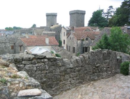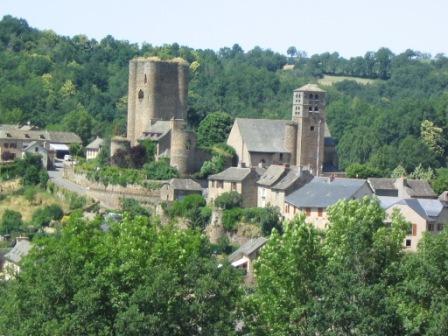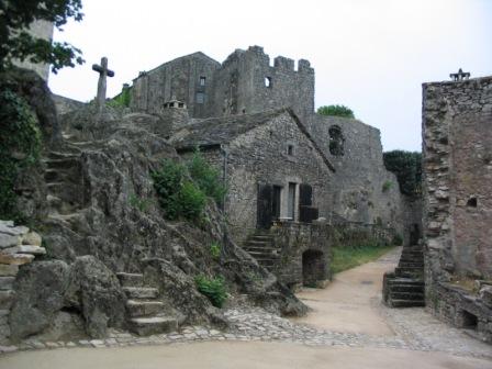 meteen (binnen een paar meter) is alle verkeerslawaai verdwenen. Calmont We komen door Calmont, een mooi oud dorpje met restanten van iets waarvan wij denken dat het ooit een groot kasteel is geweest. Bij Salmiech twijfelen we of we zullen stoppen, maar besluiten toch om nog wat door te fietsen. Dat betekent wel kilometers vals plat, voordat we eindelijk een lange afdaling maken naar het Lac de Panat. We zetten het tentje neer op Camping Les Cantharelles in Villefranche-de-Panat, we zijn dus vandaag van het ene Villefranche naar het andere gefietst. De camping ligt aan een bekend stuwmeer met veel watersportmogelijkheden, maar het is er zeer rustig. Aan de prijs kan je wel merken dat je midden in een toeristengebied zit, want dit is de duurste camping tot nu toe. Er heerst een erg plezierige sfeer op deze camping, vooral door de gemoedelijkheid van het echtpaar dat de camping beheert. Ze gaan voor ons ’s avonds in campingboeken (die wij uiteraard niet bij ons hebben) opzoeken waar we op onze route een camping kunnen vinden. Zij ontdekken dat onze volgende camping in Cornus zou moeten zijn. Ook raden ze ons aan een bezoek te brengen aan het dorpje La Couvertoirade, dat prachtig in de oorspronkelijke stijl moet zijn gerestaureerd, en autovrij is. Dus gaan we de volgende ochtend vol goede moed op pad. Omdat we al een