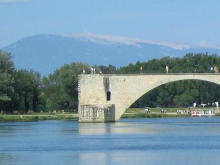 Avignon DE brug (Pont St. Bénézet) met uitzicht op de Mont Ventoux Palais des Papes