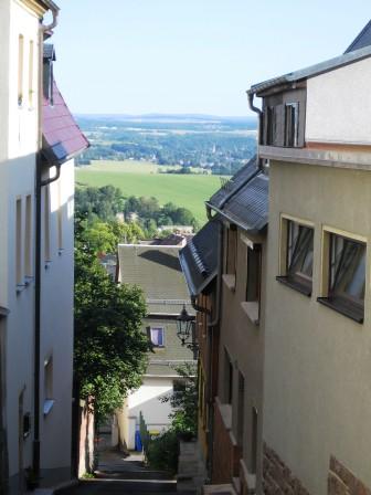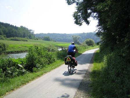 Het begin van de route door het Thüringer Wald, de Rennsteigweg, is ongeasfalteerd, onverhard en met veel kuilen en grote keien, met een klim tot 12%, en dus erg zwaar. Vooral ook omdat de ondergrond nog zacht is van de regen. We verlaten na 2 dagen ploeteren deze route dan ook, en houden een noordelijker richting aan. Daardoor komen we niet door Dresden en fietsen niet langs de Pools grens, wat eigenlijk de bedoeling was. We komen wel in het dubbelstadje Hohenstein-Ernstthal. De meeste mensen zal dat niet veel zeggen, maar dat is de geboorteplaats van Karl May (leefde van 1842 -1912); En niet alleen geboorteplaats, hij is er ook opgegroeid, getrouwd en heeft er zijn meeste boeken geschreven. Ook heeft hij er een aantal van zijn "wetsovertredingen" begaan, en er de nodige tijd in de gevangenis doorgebracht: nee hij was niet bepaald een lieve jongen. Uiteraard is er een (klein) museum aan hem gewijd.