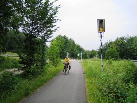 Ook in de tweede week is het weer meestal nog mooi en fietsen we o.a. over een voormalige spoorlijn, nu een geasfalteerd fietspad, zelfs door de bijbehorende spoortunnel. We rijden de voormalige DDR binnen, en dat is soms, 18 jaar na dato nog heel erg goed te zien. Het meest opmerkelijke zijn eigenlijk de grote tegenstellingen die je aantreft: of de huizen en gebouwen zijn prachtig en vooral kleurrijk opgeknapt, of het is nog een grauwe communistische aanblik. Is dat een kwestie van waar het geld aan is besteed? Ook de grote werkloosheid en ontevredenheid van de meeste Ossies wordt je heel snel duidelijk gemaakt. Die werkloosheid zit vooral in de middengroep (qua leeftijd), de meeste jongeren zijn naar het westen vertrokken, de ouderen genieten van hun pensioen dat door de gelijkschakeling van de Oost- en West-Duitse Mark van de een op andere dag 2x zoveel waard werd. Maar de middengroep, met verplichtingen, zoals schoolgaande kinderen, moeten blijven, terwijl er nog steeds bijna geen werk is. De grote voormalige DDR-staatsbedrijven zijn allemaal voor een prikkie door West-Duitse concerns opgekocht en radicaal gemoderniseerd, waardoor er voor veel minder mensen werk is, bovendien is dat dan vaak werk waarvoor een technisch hoogwaardige opleiding (bijvoorbeeld op het gebied van automatisering) nodig is; dus dat werk wordt dan ook nog eens door Westduitsers gedaan. Tja, dan mag je best wel ontevreden zijn, lijkt me.