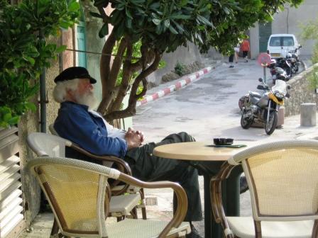 (Ex?)schipper bij de haven van Centuri Port