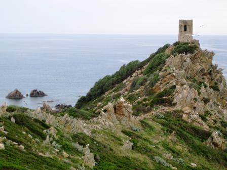 Oude vuurtoren op een eilandje voor de kust bij Ajaccio