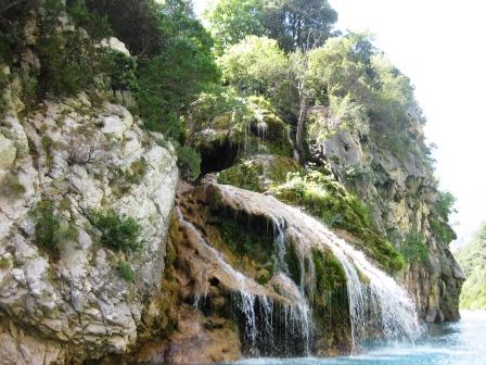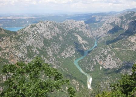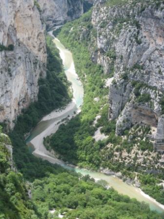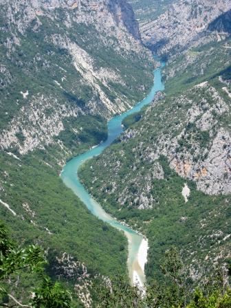 Moustiers Ste. Marie is een schilderachtig plaatsje, schitterend gelegen in en tegen rotsen, vlakbij het stuwmeer Lac de Sainte Croix, waar de rivier Verdon doorheen stroomt. Er is ook een leuke camping en daarmee voor ons een goede uitvalsbasis voor tochten in en door de Gorges du Verdon. Hoe mooi die gorges zijn moeten de foto's maar uitwijzen. We hebben zowel op de fiets (bovenlangs) als per waterfiets (dus toch ook een fiets) een tocht over het water, en dus onderlangs de gorges gemaakt: beide tochten zijn aanraders!
