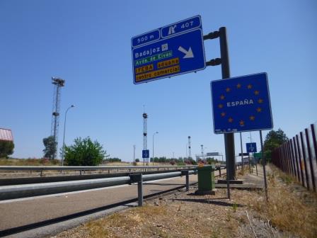Portugees-Spaanse grens met ooievaarsnesten |