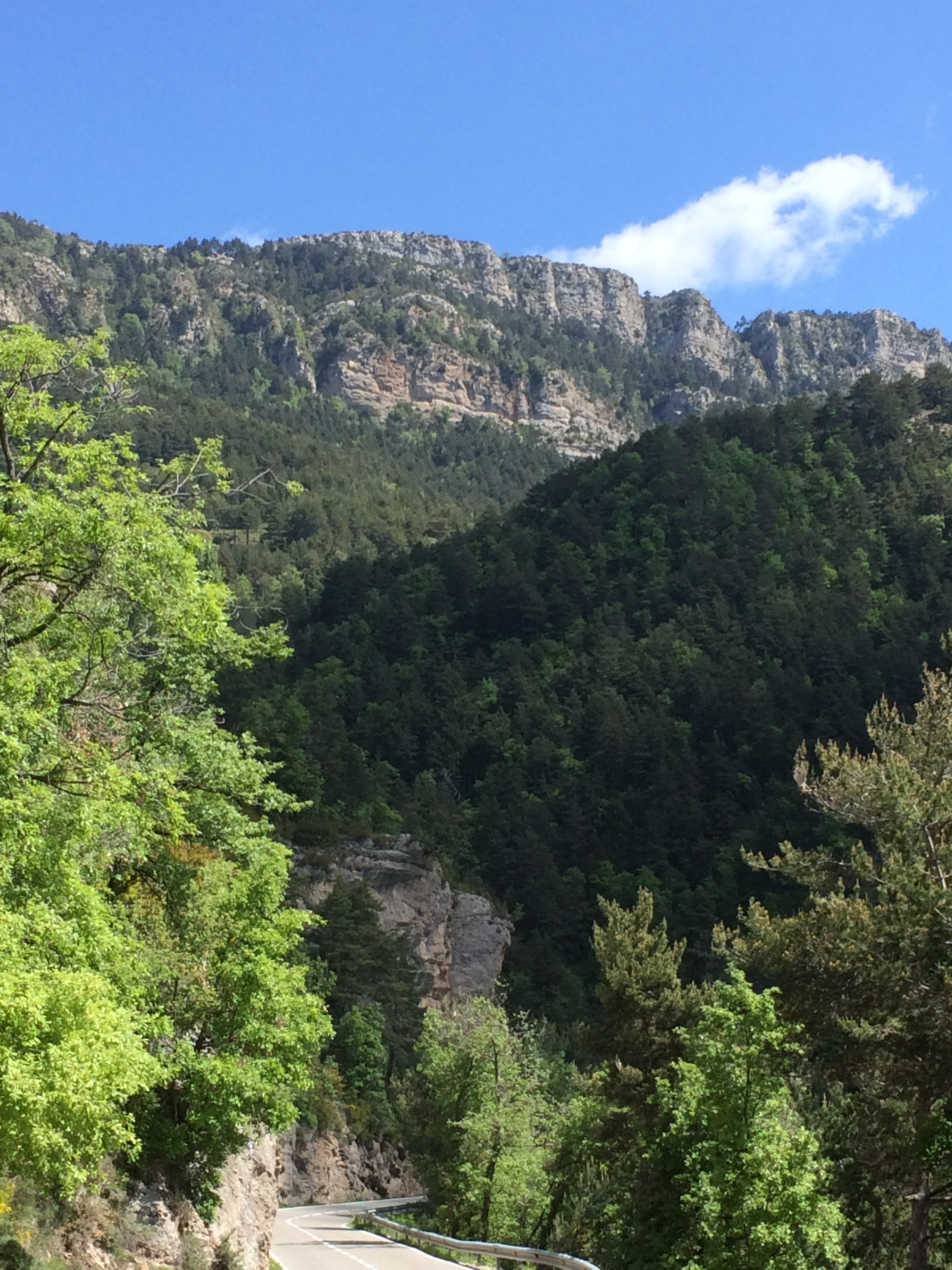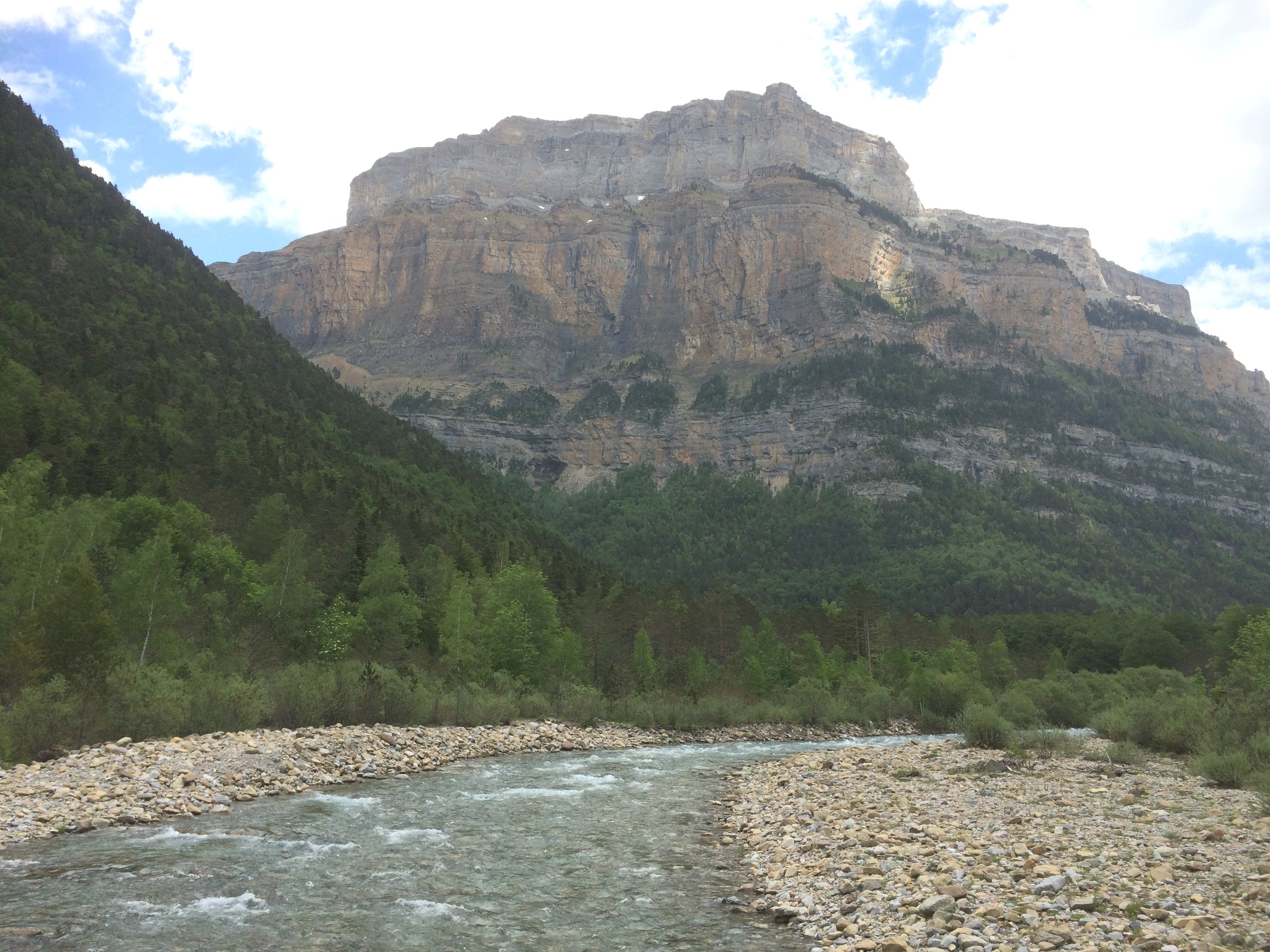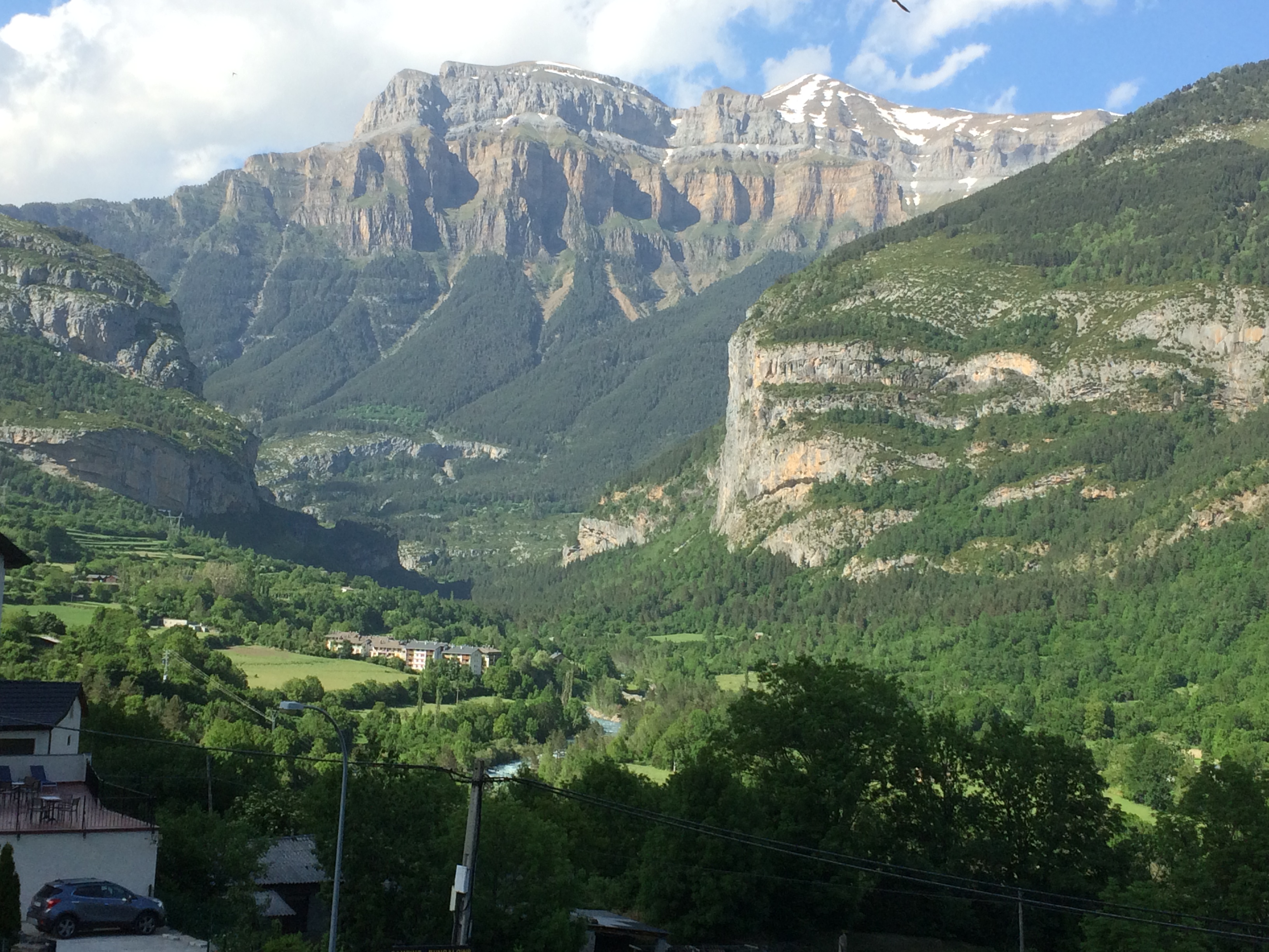 Ons vertrekpunt is Hotel Vilobi, gelegen in Vilobi d'Onyar. Het hotel ligt (bijna letterlijk) op een steenworp afstand van het vliegveld van Girona (de Catalaanse naam voor Gerona): het is 210(!) meter tussen aankomsthal en ingang van het hotel. En omdat we ook geen geluidsoverlast hebben van het vliegveld, is het dus een uitstekend vertrekpunt voor een tocht door Noord-Oost Spanje. De eerste dag fietsen we tot Olot, grotendeels over een Via Verde: een voormalige spoorlijn. Het grote voordeel daarvan is dat je niet zwaar hoeft te klimmen, dat konden de treinen ook niet: maximaal 4%. Ook is het grotendeels autovrij. Een nadeel is dat het vaak ongeasfalteerd is (wel verhard), en dat er nogal wat lange saaie, rechte stukken in zitten. Soms fiets je door een onverlicht, maar altijd kort, tunneltje. De volgende dagen fietsen we meestal over provinciale wegen, vaak erg rustig. En bovendien zijn Spaanse chauffeurs over het algemeen erg hoffelijk: ze wachten rustig tot ze kunnen inhalen, en doen dat vervolgens met een grote boog. De hellingen zijn nu wel wat steiler! We fietsen vanuit Olot via de Coll de Coubet (1010 m), Coll de Canes (1123 m) en Vallfragona naar Ripoll. De volgende dag via de C26 en Borreda naar Berga. De dag daarna via de Coll de Mina (1210 m) naar Sant LLorenc de Morunys, een heel mooi oud dorp met een authentieke Placa Major. Op onze vijfde fietsdag rijden we via de Coll de Jou (1480 m), Cabrils en Linars naar de plaats Coll de Nargó. Het is een prachtige fietsdag, veel over stille weggetjes, maar wel zwaar door de vele klimmen. Vanuit Coll de Nargó gaan we over de Coll de Boixols (1380 m) en de Coll de Fadello (1250 m) naar Tremp. Hier blijven we een dag, omdat Tremp de moeite waard is om rustig te bekijken, en we wel een rustdag kunnen gebruiken. Na de rustdag fietsen we in 2 dagen via El Pont de Suert (leuk dorp) en een schitterende nauwe kloof naar Campo, en eindigen de dag erna voorlopig in Torla, een dorp bij de ingang van het Parque Nacional de Odesa y Monte Perdido. In dit natuurpark gaan we een aantal dagen wandelen. En dat zijn prachtige dagen geworden. Op de eerste dag wandelen we vanuit het dorp (Torla dus) naar La Pradero; een echte wandeling om mee te beginnen, niet te lang, veel langs een rivier en door het bos. Op de tweede dag fietsen we eerst 10 km het park in naar Refugio San Nicolás de Bujaruelo; bij de hut kunnen we de fietsen veilig achter een afgesloten omheining stallen. We maken van daaruit een prachtige wandeling, tussen sneeuwresten, langs een snel stromend riviertje (met smeltwater) en prachtige uitzichten. We gaan tot ruim 2000 meter hoog (Torla ligt op 1000 meter). Schitterende, wel zware wandeling. Op de derde wandeldag gaan we eerst met de fiets naar La Predara (zie eerste dag), waar we onze fietsen weer op een veilige plek kunnen stallen. Voordat we gaan wandelen, raken we in gesprek met een groep basis-scholieren (groep 7?). Ze willen van alles van ons weten, ze spreken verbazend goed Engels. Van Holanda hebben ze nog nooit gehoord, wel van Cruijff, Robben, van Persie, Rijkaard, de Boer, ..... De wandeling voert ons langs een aantal watervallen, imponerend. Op de laatste wandeldag gaan we eerst weer op de fiets een stukje het park in, alvorens we met het wandelen beginnen. Dit keer is het een kloof-wandeling; via de Cascade (waterval) Aballama willen we tot Racón de Cirriata lopen. Dat lukt niet helemaal want op het laatste stukje ligt te veel sneeuw en dat vinden we op onze (niet echte wandel)schoenen te gevaarlijk. Ons oorspronkelijke plan was om na deze wandeldagen in het Parque Nacional de Ordesa y Monte Perdido de Pyreneeën over te steken en aan de Franse kant terug te fietsen naar het oosten. We horen en lezen echter (weerberichten en van vrienden) dat het weer daar veel slechter is dan aan de Spaanse kant. Dus... gaan we andere plannen maken: zie voor het vervolg Noordoost Spanje