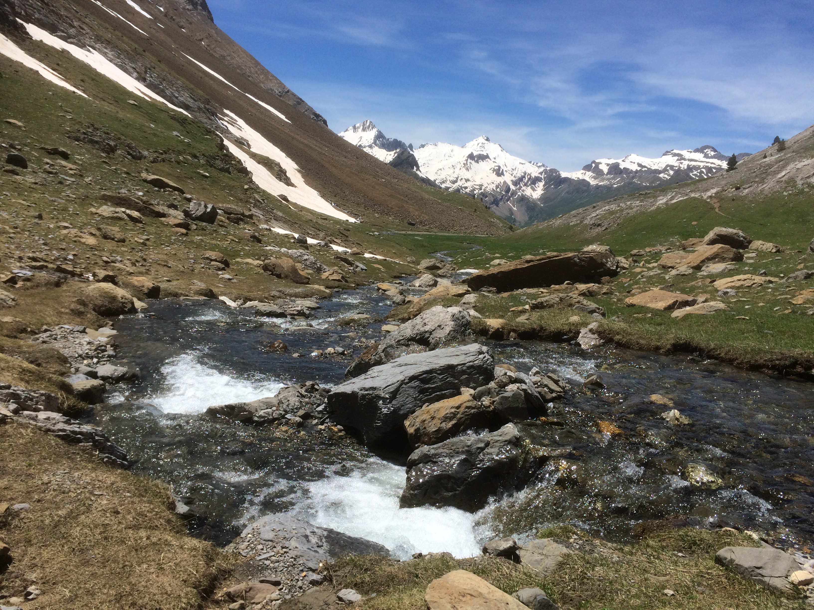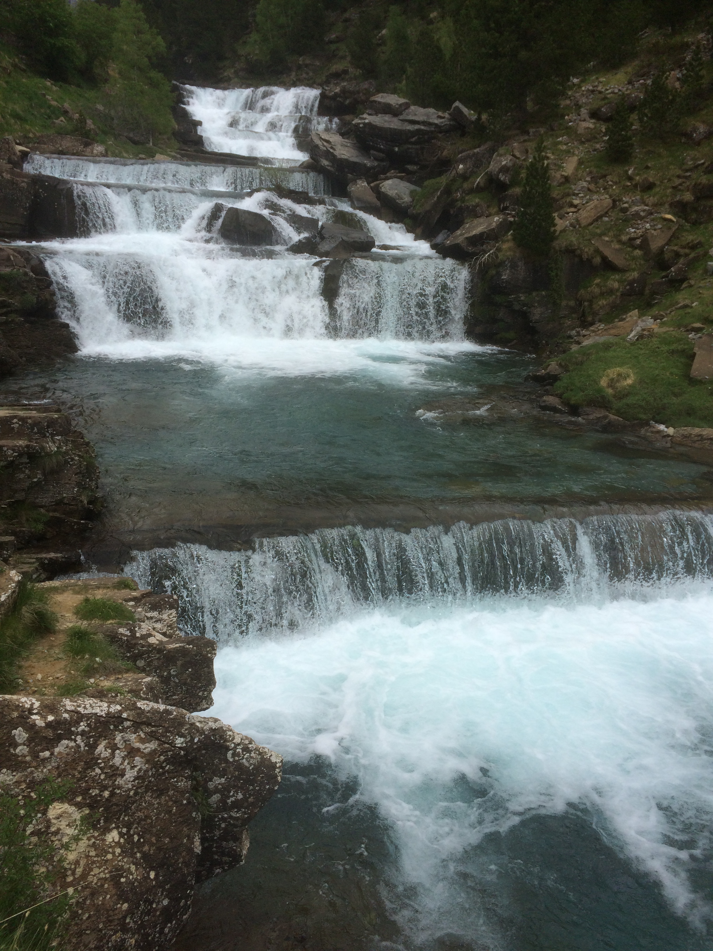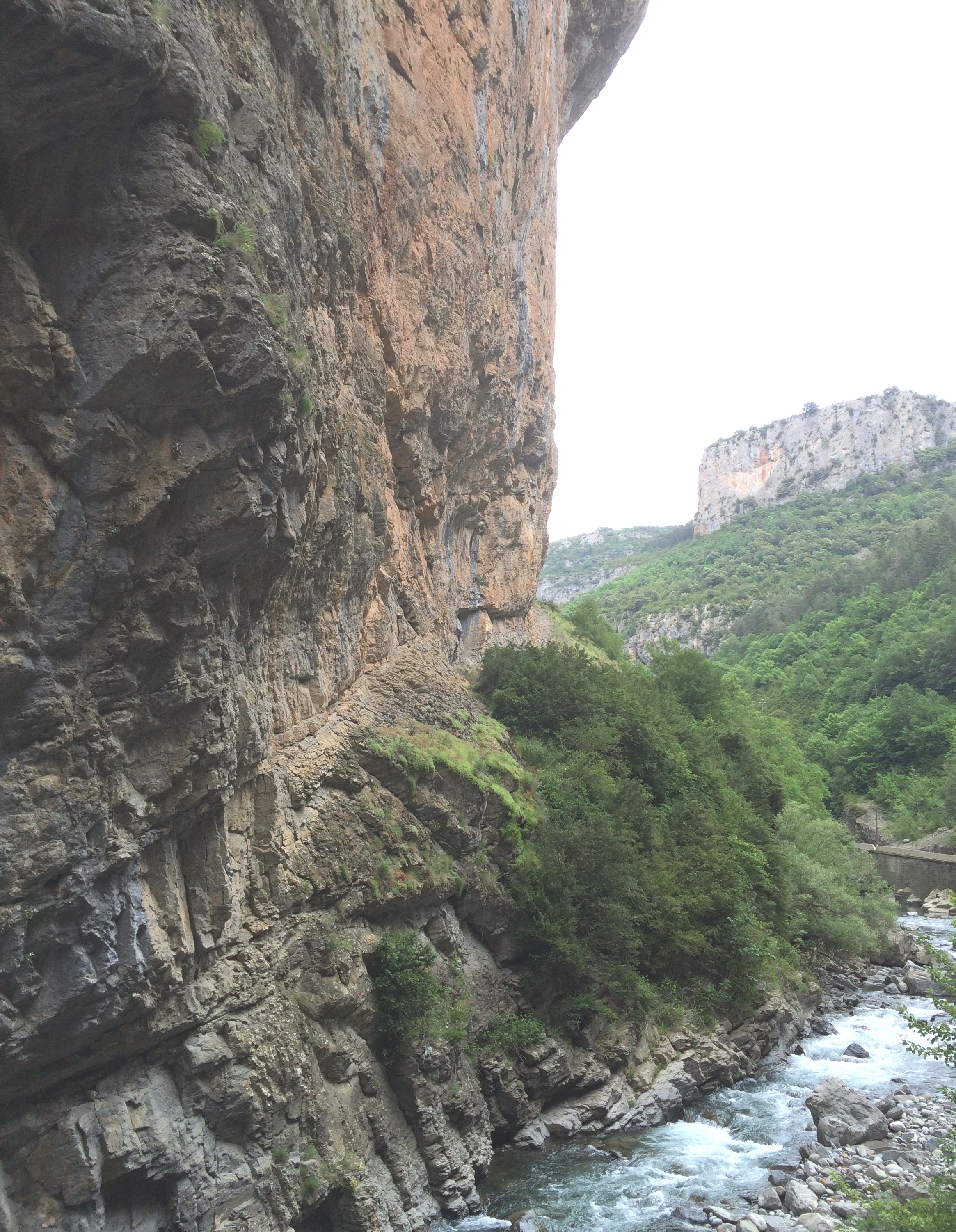 Ons vertrekpunt is Hotel Vilobi, gelegen in Vilobi d'Onyar. Het hotel ligt (bijna letterlijk) op een steenworp afstand van het vliegveld van Girona (de Catalaanse naam voor Gerona): het is 210(!) meter tussen aankomsthal en ingang van het hotel. En omdat we ook geen geluidsoverlast hebben van het vliegveld, is het dus een uitstekend vertrekpunt voor een tocht door Noord-Oost Spanje. De eerste dag fietsen we tot Olot, grotendeels over een Via Verde: een voormalige spoorlijn. Het grote voordeel daarvan is dat je niet zwaar hoeft te klimmen, dat konden de treinen ook niet: maximaal 4%. Ook is het grotendeels autovrij. Een nadeel is dat het vaak ongeasfalteerd is (wel verhard), en dat er nogal wat lange saaie, rechte stukken in zitten. Soms fiets je door een onverlicht, maar altijd kort, tunneltje. De volgende dagen fietsen we meestal over provinciale wegen, vaak erg rustig. En bovendien zijn Spaanse chauffeurs over het algemeen erg hoffelijk: ze wachten rustig tot ze kunnen inhalen, en doen dat vervolgens met een grote boog. De hellingen zijn nu wel wat steiler! We fietsen vanuit Olot via de Coll de Coubet (1010 m), Coll de Canes (1123 m) en Vallfragona naar Ripoll. De volgende dag via de C26 en Borreda naar Berga. De dag daarna via de Coll de Mina (1210 m) naar Sant LLorenc de Morunys, een heel mooi oud dorp met een authentieke Placa Major. Op onze vijfde fietsdag rijden we via de Coll de Jou (1480 m), Cabrils en Linars naar de plaats Coll de Nargó. Het is een prachtige fietsdag, veel over stille weggetjes, maar wel zwaar door de vele klimmen. Vanuit Coll de Nargó gaan we over de Coll de Boixols (1380 m) en de Coll de Fadello (1250 m) naar Tremp. Hier blijven we een dag, omdat Tremp de moeite waard is om rustig te bekijken, en we wel een rustdag kunnen gebruiken. Na de rustdag fietsen we in 2 dagen via El Pont de Suert (leuk dorp) en een schitterende nauwe kloof naar Campo, en eindigen de dag erna voorlopig in Torla, een dorp bij de ingang van het Parque Nacional de Odesa y Monte Perdido. In dit natuurpark gaan we een aantal dagen wandelen. En dat zijn prachtige dagen geworden. Op de eerste dag wandelen we vanuit het dorp (Torla dus) naar La Pradero; een echte wandeling om mee te beginnen, niet te lang, veel langs een rivier en door het bos. Op de tweede dag fietsen we eerst 10 km het park in naar Refugio San Nicolás de Bujaruelo; bij de hut kunnen we de fietsen veilig achter een afgesloten omheining stallen. We maken van daaruit een prachtige wandeling, tussen sneeuwresten, langs een snel stromend riviertje (met smeltwater) en prachtige uitzichten. We gaan tot ruim 2000 meter hoog (Torla ligt op 1000 meter). Schitterende, wel zware wandeling. Op de derde wandeldag gaan we eerst met de fiets naar La Predara (zie eerste dag), waar we onze fietsen weer op een veilige plek kunnen stallen. Voordat we gaan wandelen, raken we in gesprek met een groep basis-scholieren (groep 7?). Ze willen van alles van ons weten, ze spreken verbazend goed Engels. Van Holanda hebben ze nog nooit gehoord, wel van Cruijff, Robben, van Persie, Rijkaard, de Boer, ..... De wandeling voert ons langs een aantal watervallen, imponerend. Op de laatste wandeldag gaan we eerst weer op de fiets een stukje het park in, alvorens we met het wandelen beginnen. Dit keer is het een kloof-wandeling; via de Cascade (waterval) Aballama willen we tot Racón de Cirriata lopen. Dat lukt niet helemaal want op het laatste stukje ligt te veel sneeuw en dat vinden we op onze (niet echte wandel)schoenen te gevaarlijk. Ons oorspronkelijke plan was om na deze wandeldagen in het Parque Nacional de Ordesa y Monte Perdido de Pyreneeën over te steken en aan de Franse kant terug te fietsen naar het oosten. We horen en lezen echter (weerberichten en van vrienden) dat het weer daar veel slechter is dan aan de Spaanse kant. Dus... gaan we andere plannen maken: zie voor het vervolg Noordoost Spanje