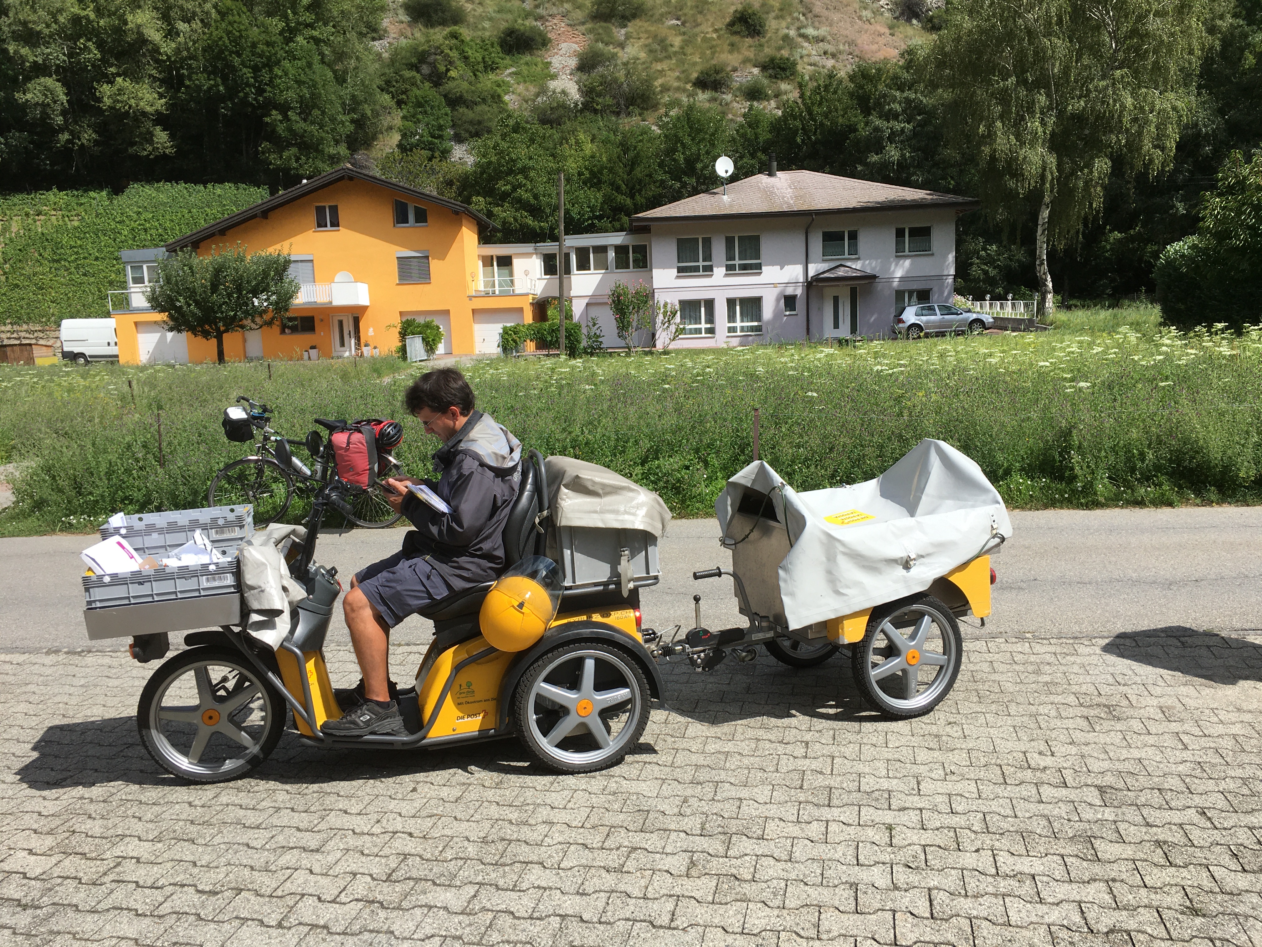 Algemene opmerkingen In vrijwel elk Zwitsers dorp tref je een of meerdere bronnen aan waar heerlijk en koud drinkwater uit komt. In veel dorpen zie je nog een oude wasplaats. De stopcontacten in Zwitserland verschillen van die in Nederland en Duitsland; de platte stekkers, zoals die van opladers van mobiele telefoons en tablets passen, maar ronde (2- en 3-weg) stekkers passen niet. De postbodes rijden hier met heel bijzondere voertuigen: zie foto Koeien, koeien en nog eens koeien, en al die koeien hebben een bel om de nek; nauwelijks schapen; in de Jura veel paarden.