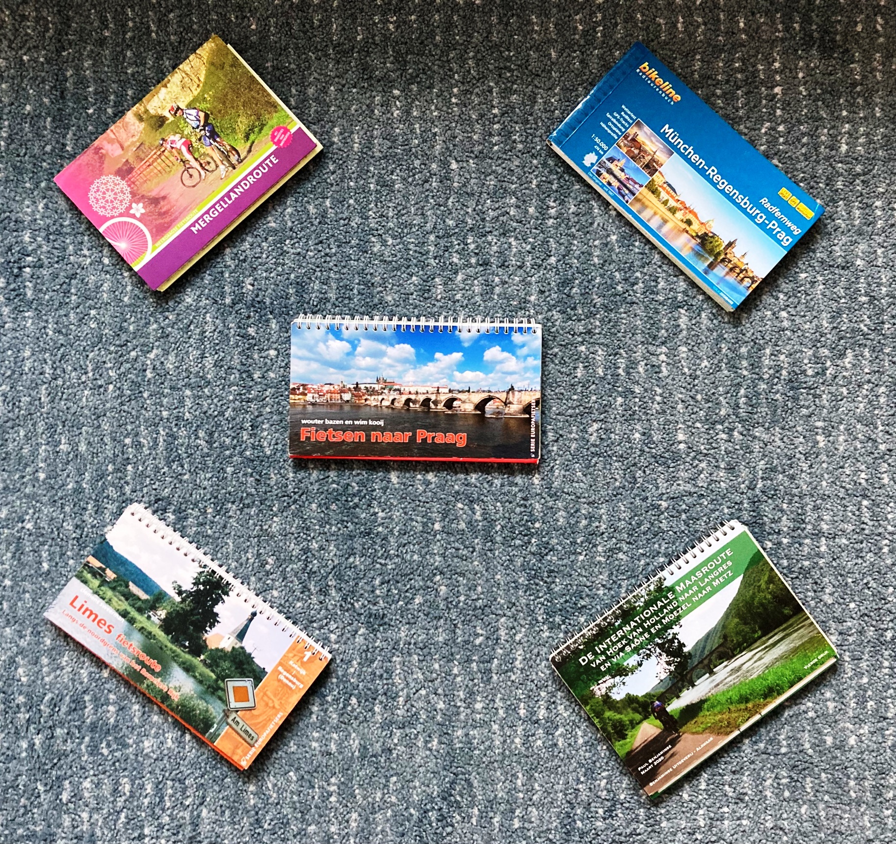 Fietsen naar Praag van Wouter Bazen en Wim Kooij (Europafietsers): Millingen - Praag München-Regensburg-Prag (Bikeline): Praag - Regensburg Limesroute, deel 1 (Europafietsers): Regensburg - Remagen Mergellandroute (LF6) van Diederik Mönch: Aken - Maastricht Internationale Maasroute LF-M (vroeger LF3) van Paul Benjaminse: Maastricht - Ravenstein